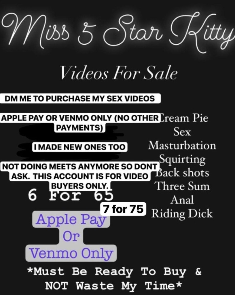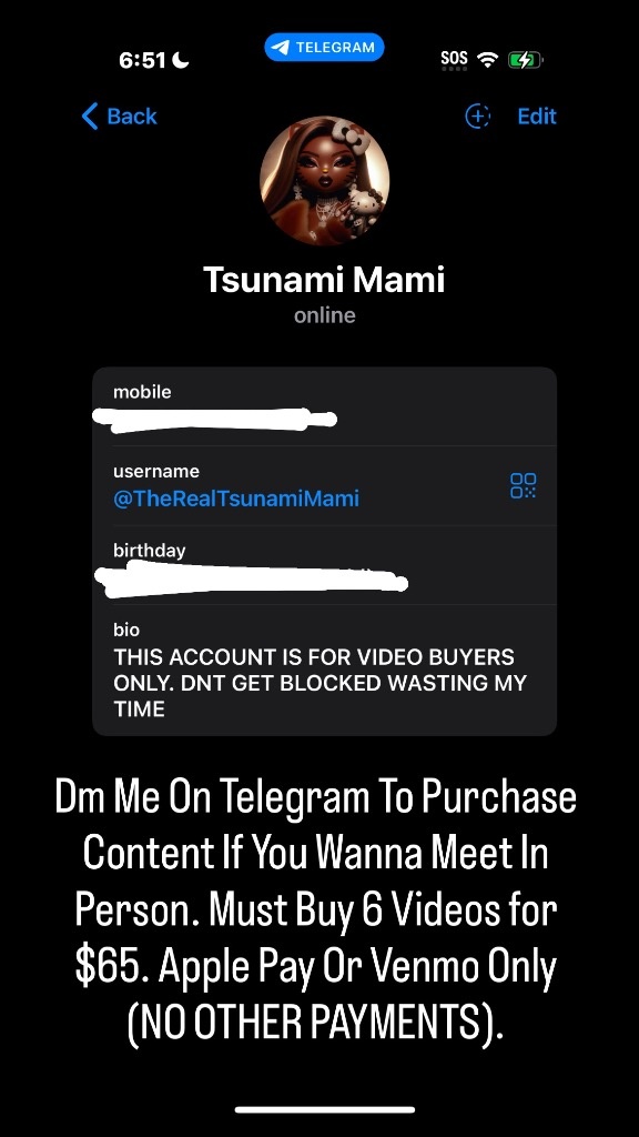 TEXT ME IF YOU WANNA DISCOUNT. I DONT DO CHEAP MEN SO DONT EVEN COME IVER HERE WITH THAT. $120 QUICKIE SAFE SEX AND HEAD. I DONT GOT TIME FOR GAMES AND LIARS WHEN YOU BUY TODAY YOU GET $40 OFF RAW SERVICE OR CREAMPIE BUY SOME VIDEOS OR DONT TEXT ME ABOUT MEETS WITHOUT BUYING 13 VIDEOS FOR 100 DONT TEXT MY PHONE BULLSHITTING AND LYING. IF U DONT WANT VIDEOS STOP HMU. DM ME ON TELEGRAM TO PURCHASE MY SEX VIDEOS https://t.me/TheRealTsunamiMami MUST BUY 7 VIDEOS FOR $75 IN ORDER TO MEET ME IN PERSON. APPLE PAY OR VENMO ONLY NO OTHER FORM OF PAYMENT NOT MEETING NO ONE THAT DIDNT BUY VIDEOS TODAY. IF U DM ME ABOUT ANYTHING OTHER THEN BUYING VIDEOS YOU GET BLOCKED IMMEDIATELY. I HAVE NO TIME FOR LIARS AND PEOPLE THAT WASTE MY TIME.